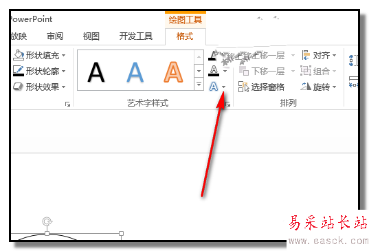 3、保持正圓在選中的狀態;然后,在”格式“選項卡這里的“藝術字樣式”組這里點下“文字效果”的小三角。