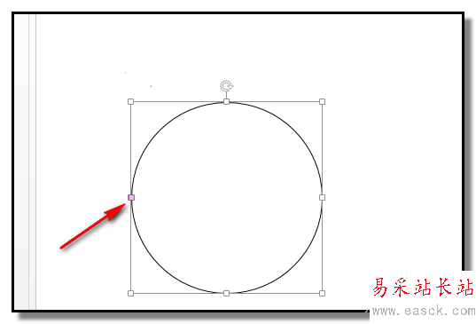 7、如果覺得這個弧形不太滿意,可以用鼠標點住圓左側的淡紫色節點,進行調節。