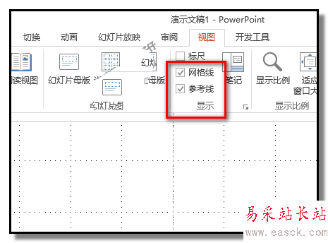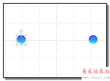 1、插入兩個小球圖片,把圖片調整到合適的大小和位置。兩個小球要保持在同一水平線,為了更好確定小球位置,點開“視圖”選項卡,把“網格線”和“參考線”都打上勾。這樣,我們就能清楚的看到兩個小球所處的位置了。