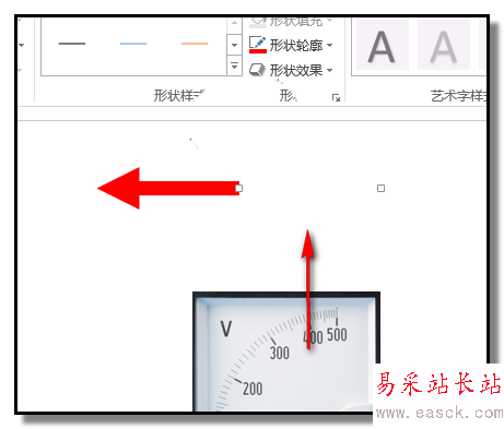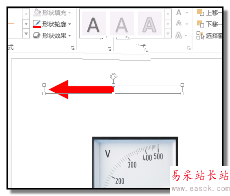 5、現在,同時選中這兩個箭頭并組合在一起;再把組合的箭頭移到電壓表圖片上,如下圖所示的位置。