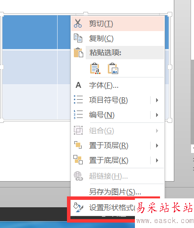 10、選擇表格,右擊在彈出的菜單中選擇“設(shè)置形狀格式”