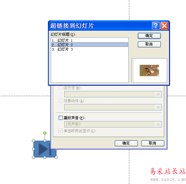 4、接著彈出超鏈接到幻燈片的對話框,從所有的幻燈片中選擇需要連接到的幻燈片,點擊確定按鈕。