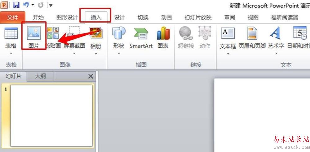 1、插入圖片。新建1個PPT,并打開,點擊PPT菜單欄中的【插入】,然后再在下方的“圖像”區域選擇【圖片】