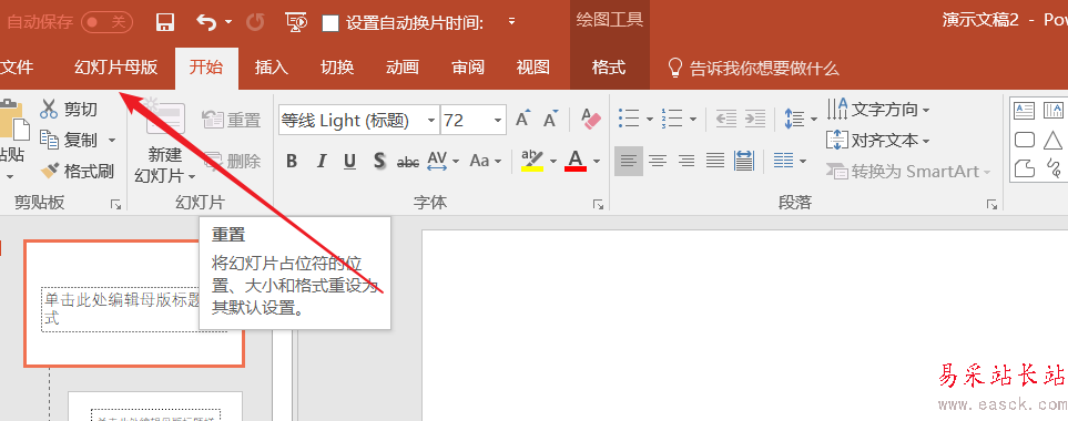 5、只留下如下圖所示的東西,然后點擊開始中修改文字位置,大小,表格等。最后點擊關閉母版即可。最后從版式中應用修改全部的版式。