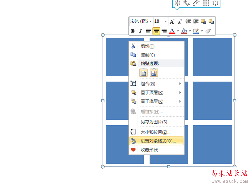 4、執(zhí)行格式-左右居中命令,右鍵單擊圖形,從下拉菜單中選擇設(shè)置對(duì)象格式選項(xiàng)。