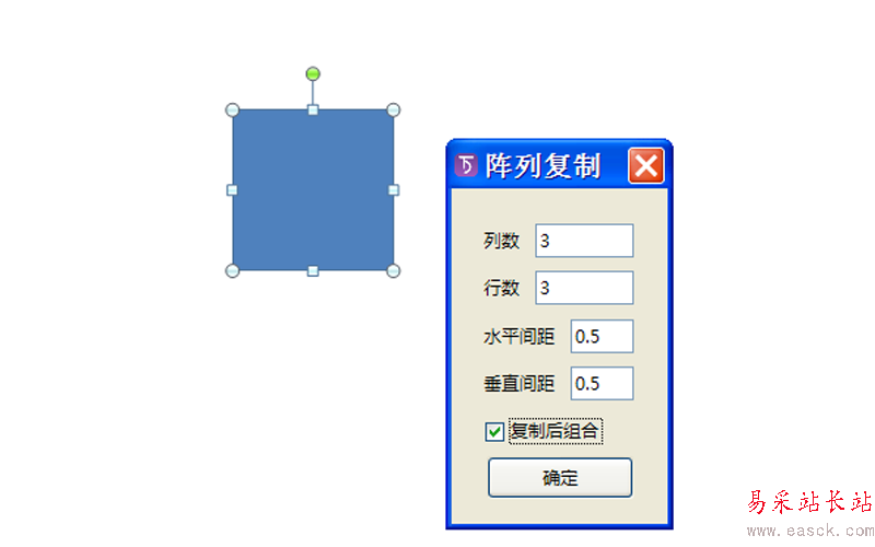 2、接著執(zhí)行陣列復(fù)制命令,在彈出的對(duì)話框中勾選復(fù)制后組合選項(xiàng),其他采用默認(rèn)參數(shù),點(diǎn)擊確定按鈕。