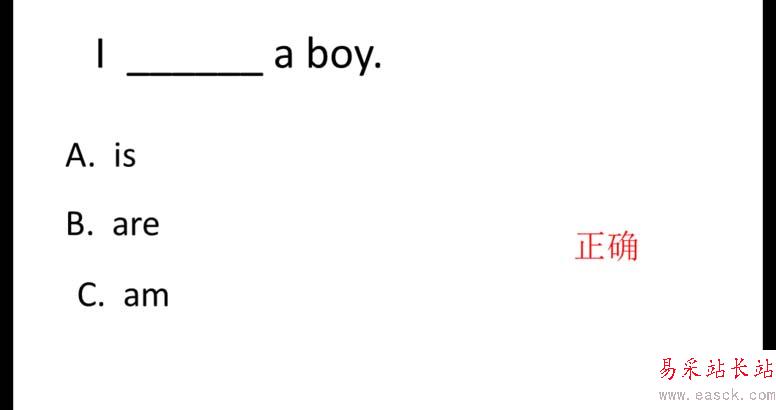 5、進行展示,放映幻燈片,當點擊C選項時,就會出現“正確”的提示。
