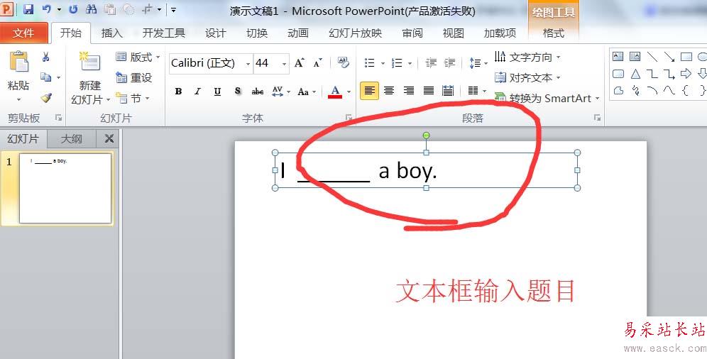 1、創建一個新的PPT幻燈片。接著選擇一個文本框,在文本框中把題目輸入進去。題目的字體盡量大一些。
