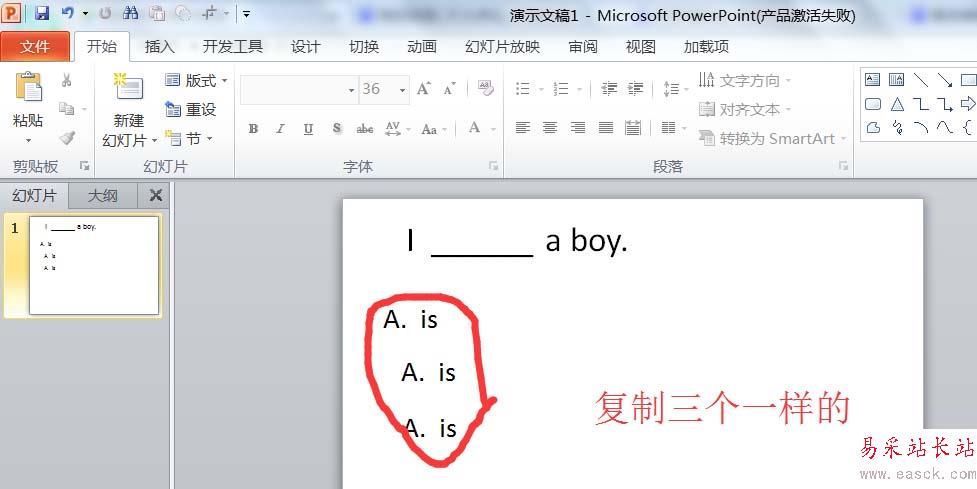 2、再選擇一個文本框,輸入選項內容。接著,復制兩個一樣的選項。再對復制的兩個選項進行內容修改。