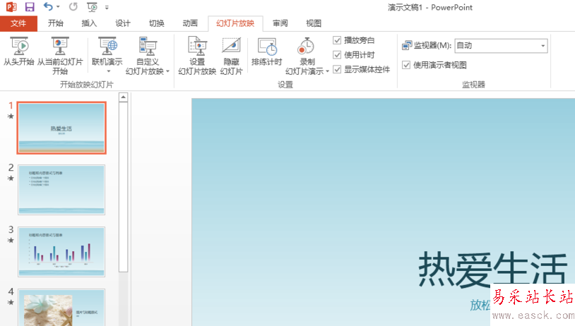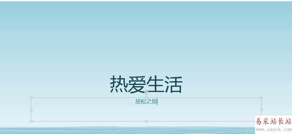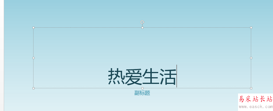 8、在“演示文稿”首頁上添加正標題“熱愛生活”