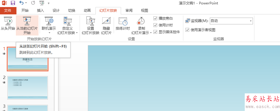 10、在工具欄點擊“幻燈片”放映,可以看到演示效果。