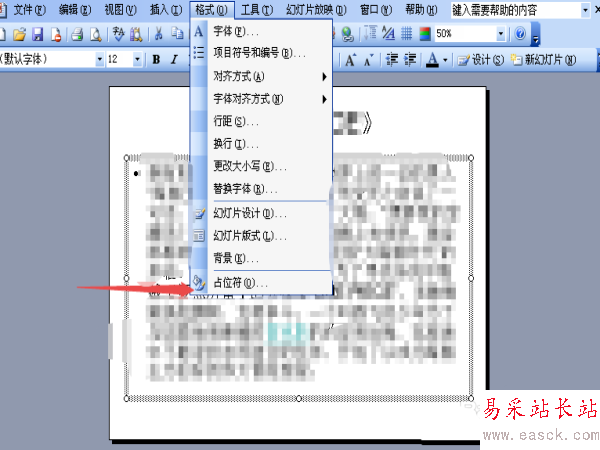 2、單擊菜單欄中“格式”——“占位符”命令。