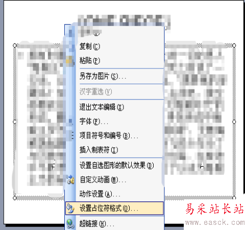 3、或者右鍵單擊鼠標(biāo),選擇“設(shè)置占位符格式”命令。