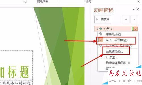 8、選擇【從上一項開始】,然后點擊【效果選項】,打開窗口