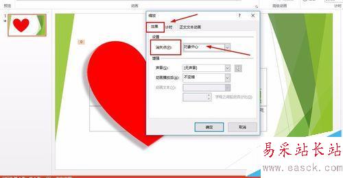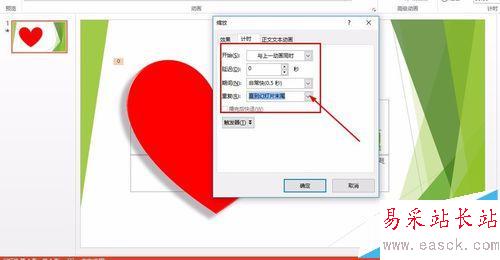 6、選中【縮放動畫】,對心形完成動畫的給與