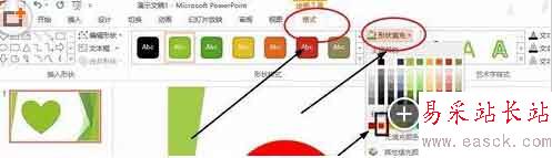 2、在【格式】下【形狀樣式】中,點擊【形狀填充】,使心形變成火熱的紅色;