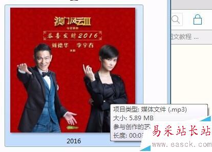 2、播放音樂,試聽聲音正常,并且是自己想插入的音樂文件。如圖所示,我下載的是2016新年音樂,是MP3文件。正常播放的,但是插入也是提示錯誤。思考一般QQ、旺旺等軟件的提示聲音都是wav文件,下面來轉換插入。