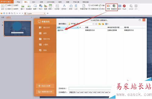 WPS軟件PPT插入聲音,或者背景音樂,提示“金山演示無法從所選文件插入聲音。請檢查文件是否已損壞、路徑和文件名是否正確,然后再是。”以下來解決該WPS Office提示的問題。