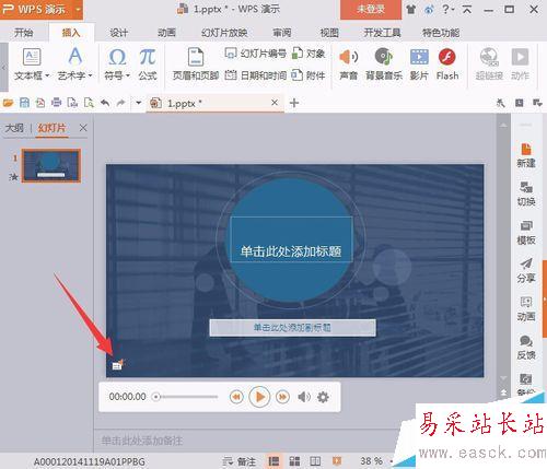 4、轉換完成,返回到WPS-PPT,重新選擇轉換完成的wav文件,即可插入成功。插入成功,即顯示播放按鈕,可以預覽試聽啦。