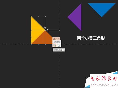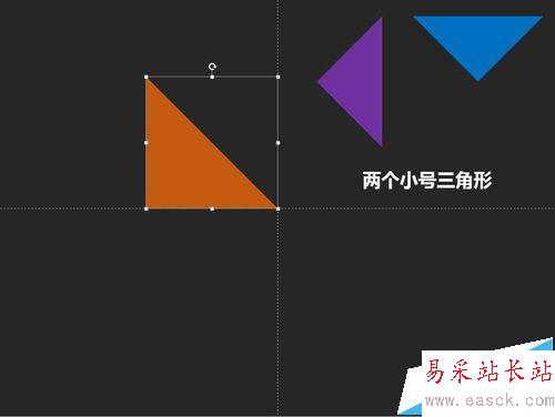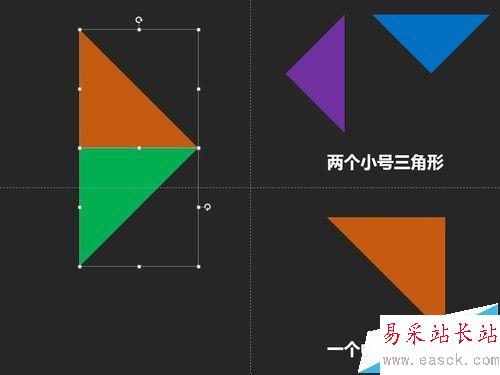 13、復制兩個中號三角形,更換顏色,擺放為如圖所示。