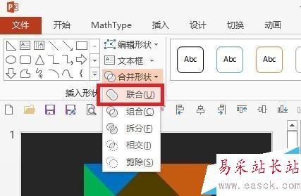 14、選中兩個三角形,點擊格式-插入形狀-合并形狀,選擇聯合。注意聯合后的顏色是先選擇的那個三角形的顏色。