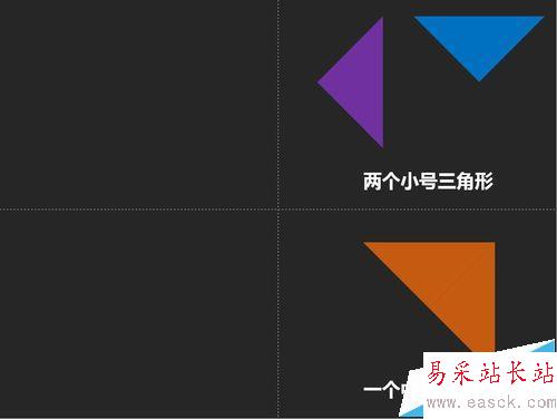 7、得到七巧板中最基本的圖形,小三角形。注意備份一個此三角形,因為其他形狀都是可以用它來進行聯合構成的。我們將這個三角形命名為基礎三角形,下面提到到的三角形均指這個三角形。