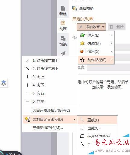 4、并依此選擇動(dòng)作路徑,自定義路徑,然后可以根據(jù)自己需要來(lái)選擇具體的不同路徑,在這里我選擇的是直線路徑。