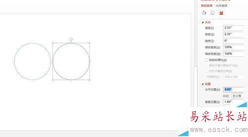 6、復(fù)制這個(gè)圖形,并設(shè)置其形狀輪廓為虛線,點(diǎn)擊大小右下角箭頭調(diào)整兩個(gè)圖形在同一位置,右鍵點(diǎn)擊虛線圖設(shè)置“置于頂層”