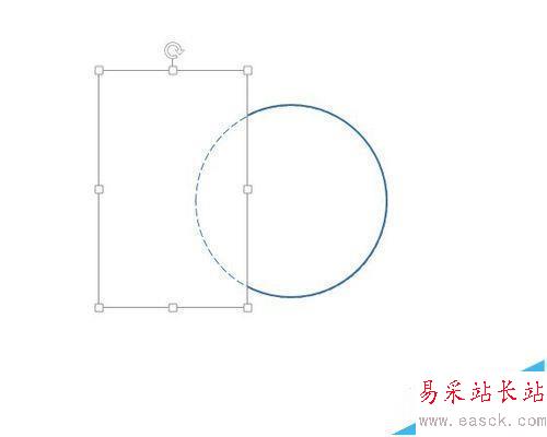 7、然后插入一個(gè)矩形,設(shè)置成填充白色無(wú)輪廓,并置于兩個(gè)圓的層之間,然后放在想要虛線的那部分位置,大功告成