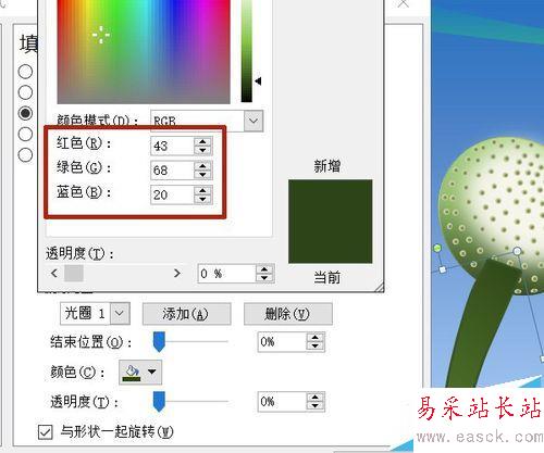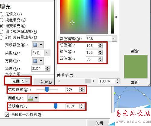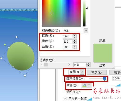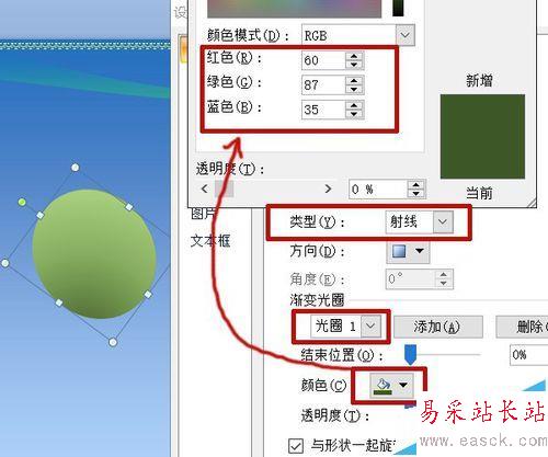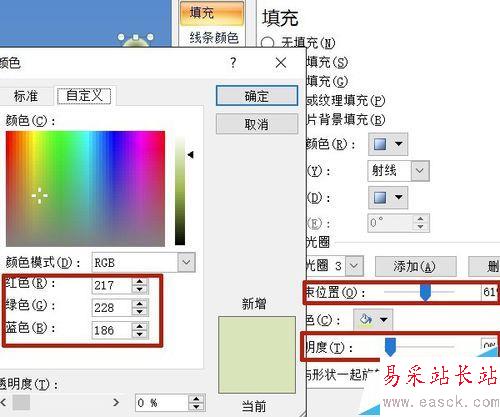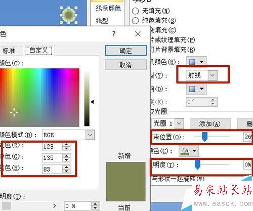 5、橢圓工具畫一個小圓,去除輪廓線條。漸變類型中心輻射,光圈設置如圖。