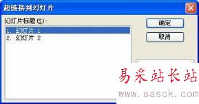 3、在出現的“超鏈接到幻燈片”窗口,選擇你需要鏈接到的幻燈片,然后確定,完成一條目錄的超鏈接,如圖: