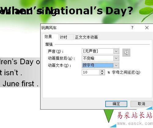 10、效果選項依然選擇按字母,延遲為默認的10%。