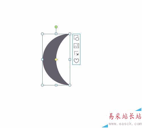 3、對月牙進行調整。插入月牙后不代表就適合用,要對月牙進行大小和位置還有顏色的調整,這是繪畫笑臉的第一步。
