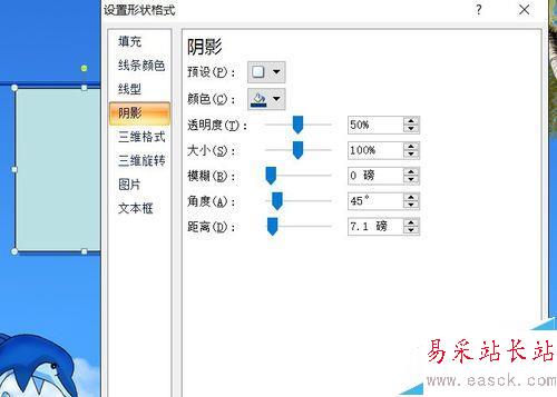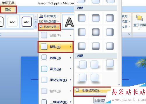 2、繪圖工具——格式——形狀效果——陰影——陰影選項。