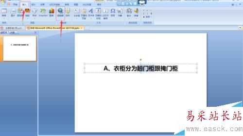 1、首先,打開PTP,找到需要鏈接的文字,然后選中該文字,比如圖中的“趟門柜”
