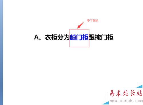 4、操作完第三步之后發(fā)現(xiàn),我們選擇超鏈接的文字變顏色了,這代表我們已經(jīng)鏈接成功