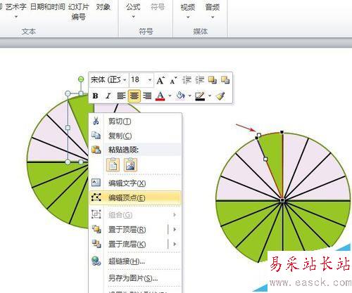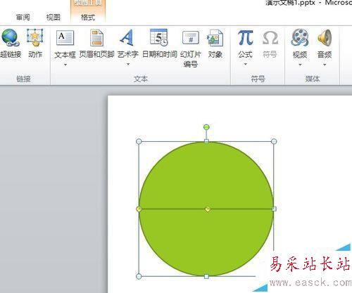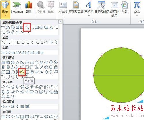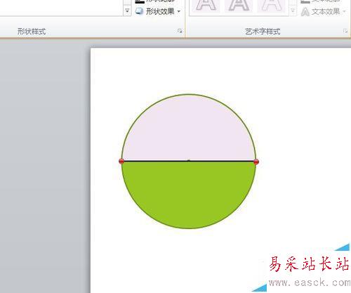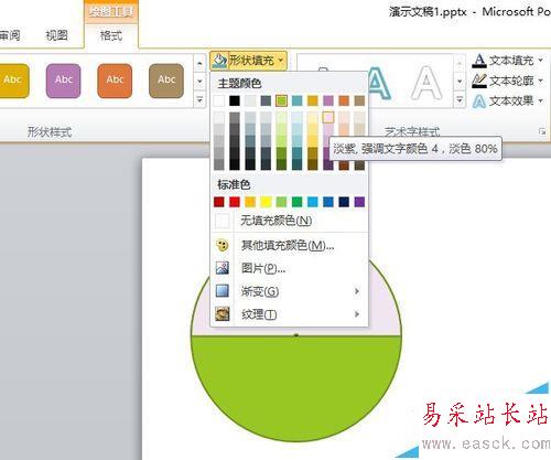 5、繪圖工具——格式——形狀填充,為半圓填充另一種顏色,使其與原來的圓區分開。