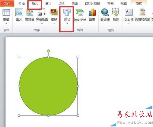 1、插入——形狀工具——橢圓,按住shift鍵拖動,拉出一個正圓。