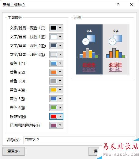 超鏈字體默認是藍色,其實可以根據需要,將它變成任意色彩。選中超鏈文字,切換到“設計”選項卡,點擊“變體”的下拉按鈕,選擇“顏色→自定義顏色”,打開“新建主題顏色”對話框,在其中,點擊“超鏈接”及“已訪問的超鏈接”(鏈接點擊后的顏色)項,就可以按自己的設計需要選擇任意的超鏈色彩啦。設置完畢,點擊“保存”即可。