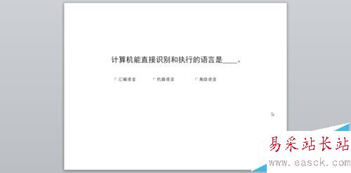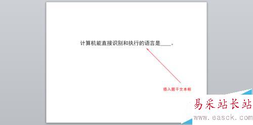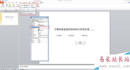 2、在幻燈片插入題干文本框,輸入“計算機能直接識別并運行的語言是()。”