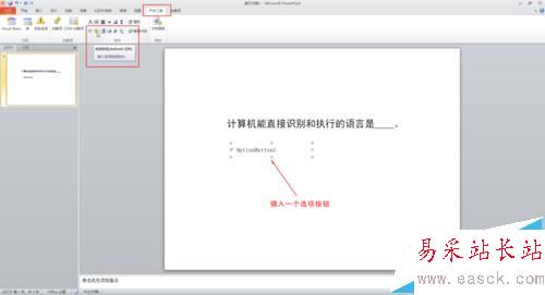 PowerPoint是人們在日常工作、學習中常用的一款演示文稿制作軟件,利用其開發工具和VBA腳本,還可以實現強大的交互功能。這里給大家介紹一個在PowerPoint2010中實現單選題功能的方法。