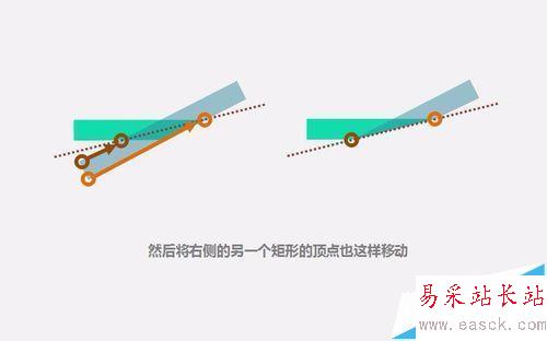 5、之后將右側的另一個矩形的頂點也這樣移動