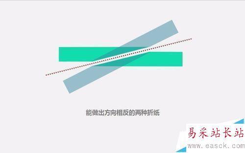 3、選一條對角線,可將兩個矩形分為兩部分,能做出方向相反的兩種折紙