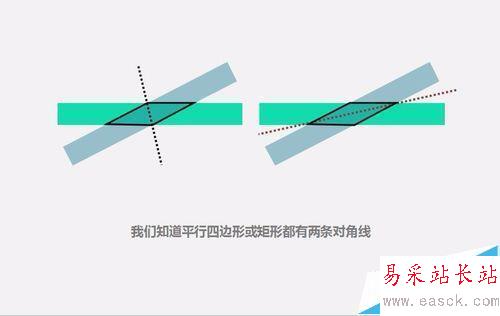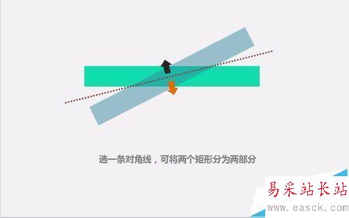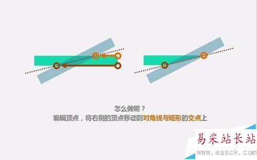 4、操作方法,編輯頂點,將右側的頂點移動到對角線與矩形的交點上
