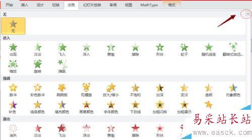 3、我們可以選擇我們喜歡的動畫進行設置。如果這些都不是自己想要的,我們可以點擊下拉三角進行選擇喜歡的動畫方式,包括“進入”、“強調”、“退出”、“動作路徑”等等