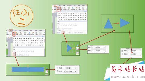 (3)調整字體的顏色、大小等信息,排列在箭頭的上方。