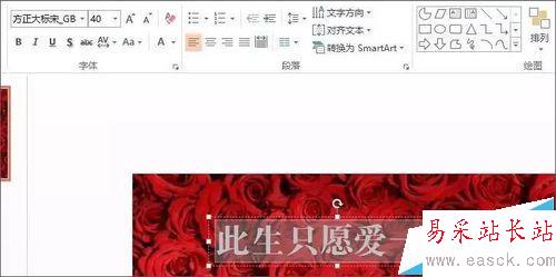 4、接下來我們添加上我們要做鏤空的文字,當然你也可以不選文字,這里視個人喜好,點擊插入——文本,輸入并編輯好,記得不要寫太多哦,不然就失去我們想要表達的效果了;