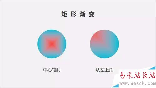 方法三:矩形漸變(5種漸變方式),第四種——路徑漸變(僅一種方式),第三、四種大家知道怎么使用就好,應用起來使用率并不高,效果如下圖;