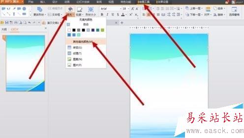 4、我們可以給插入的元素設置顏色或其他效果。在“繪圖工具”→“填充”→“其他顏色填充”來設置填充顏色和透明度。另可以通過“輪廓”來設置輪廓顏色。