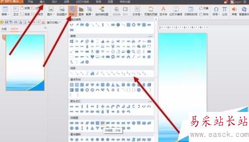 3、可以給海報加入一些元素。菜單欄“插入”→“形狀”/“圖片”,然后可以選擇一些合適的圖形加入海報中。